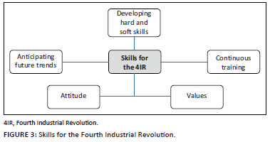 Various researchers have highlighted that employees must have new core skills to deal with the 4IR (Anakpo & Kollamparambil 2022; Asmal et al. 2020; Ayinde & Kirkwood 2020). For example, Motyl et al. (2017) state that employees need to be able to deal with virtual, augmented and real worlds, complex situations, and multifunctional teams. Ghislieri (2017) recognises that soft skills are extremely important, but points out that many employees do not realise that they need to use these skills in their work contexts.