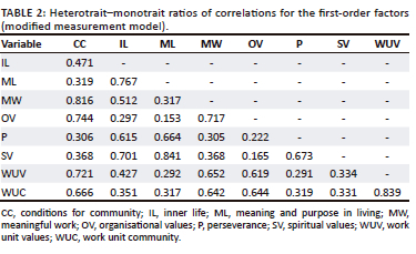 The results in Table 2 confirm discriminant validity in the modified measurement model for the first-order factors.