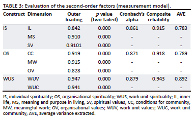Table 3 summarises the results of the evaluation of the measurement model for each second-order factor.