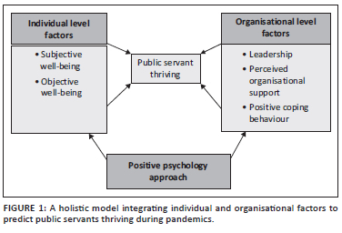 ORIENTATION: The coronavirus disease 2019 (COVID-19) pandemic impacted several facets of society, with public sector employees particularly hard hit. Supporting public servants' crisis-resilience became imperative. This study presents a well-being model based on positive psychology that is specifically designed for public servants. According to the model, optimal function is achieved when all the key components of well-being, drawing from both organisational and individual well-being, are considered