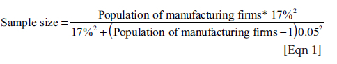 where the coefficient of variation was fixed at 17% and standard error was fixed at 5%. The firms were selected randomly. This sampling formula was selected because it involved probabilistic sampling using a fixed coefficient of variation and standard error at each level, ensuring that all sectors were represented.