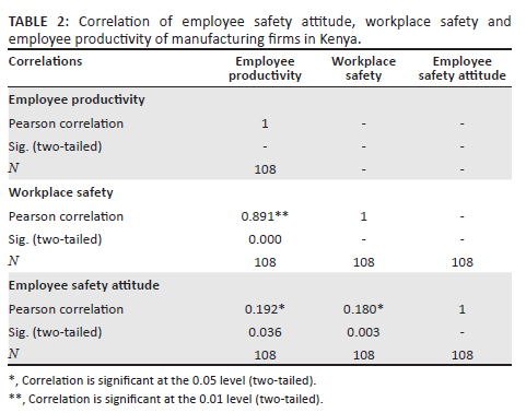 Correlation of employee safety attitude, workplace safety and employee productivity of manufacturing firms in Kenya