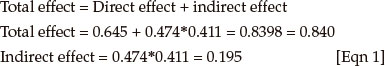 VAF = indirect effect/direct effect = 0.195/0.840 = 0.232