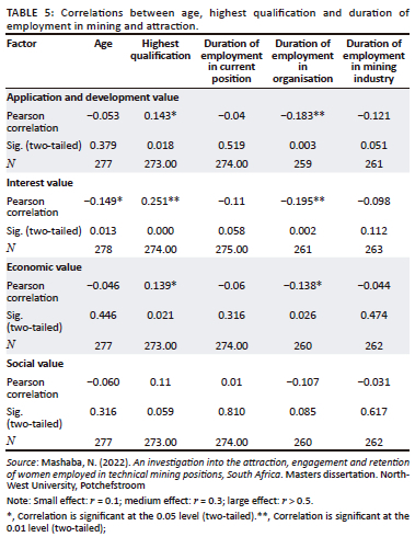 PRACTICAL/MANAGERIAL IMPLICATIONS: This research is significant in that it provides employers and human resource managers with information about factors affecting the attraction of women to technical positions in South Africa's mining industry and globally