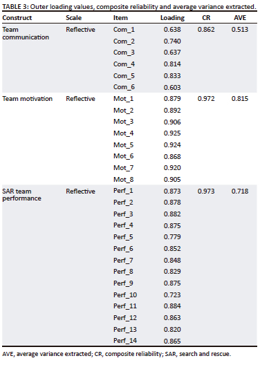 RESEARCH APPROACH / DESIGN AND METHOD: The study comprised 850 individual team members who were aggregated into 209 teams. Teams were among the SAR teams of the Malaysian Fire and Rescue Department. The study used a quantitative approach, employing the purposive sampling technique. The relationships between team communication, team motivation and SAR team performance were analysed using the structural equation modelling (SEM