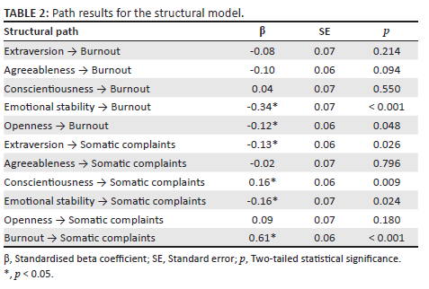 Personality, job burnout, and somatic complaints: A structural model in a South African sample