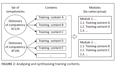 Each job family includes a set of competencies. Based on the competency dictionary, training contents are identified. This analysis has been repeated with all other competencies for the job family in Figure 2. Then, all training contents for the competencies of the job family are synthesised and arranged in a logical order to form training modules of the job families.