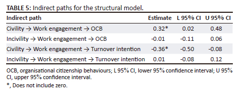 H10a: Work engagement serves as a mediator in the relationship between civility and the individual and organisational outcome of organisational citizenship behaviour and turnover intention.