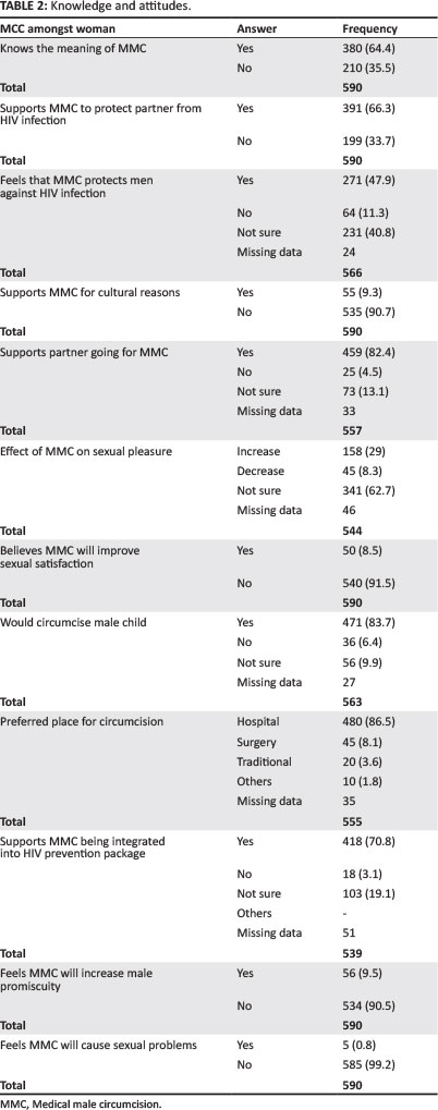 A literature review indicates that there has been a qualitative review of the knowledge and attitudes of women around MMC in rural KwaZulu-Natal.10 This current study employs quantitative data to expand the knowledge, and is important as women could potentially yield a powerful positive or negative influence over the decisions of their partners and sons.