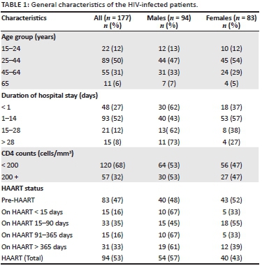 General characteristics of HIV-infected patients