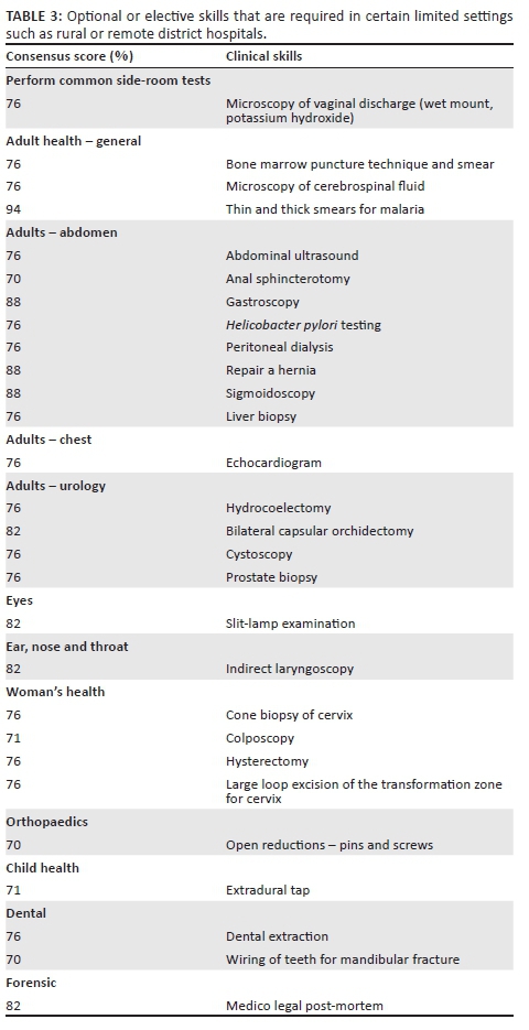 Since the official introduction of family medicine registrar training in South Africa, there have been two previous publications on the clinical skills required. The first study 'Building consensus on clinical procedural skills for South African family medicine training using the Delphi technique' proposed a set of essential clinical skills for the training of FPs, which served as a benchmark for South African family medicine training programmes.4