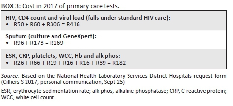 The suggested diagnostic investigations are affordable and the costs insignificant when considered in comparison with the cost of surgical treatment for complicated STB and the cost of living with a disability. In Box 3, the 2017 prices of the suggested investigative PHC tests in South Africa are illustrated, demonstrating the low costs involved. Thus, it can be demonstrated that cost is not a valid barrier to implementing these tests and actions.