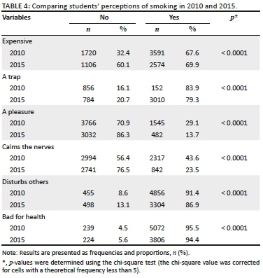 Evolution of attitudes, trends and perceptions of smoking among middle and secondary school students in the Gharb Region, Morocco, 2010-2015