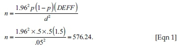 Minimum sample size = 576.24 + 23.44 = 599.68.