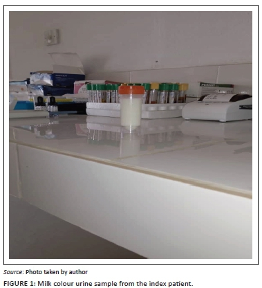 The principal clinical features of passage of milky colour urine, proteinuria and hypocholesterolaemia seen in the index case were consistent with the findings reported in most studies.1,2,3,4 However, the expected hypoproteinaemia was not seen in the patient, which might indicate a milder form of the condition. Symptoms indicating more severe disease might include flank pain, difficulty in bladder emptying from bladder clots in severe cases, frequency, haematuria, backpain, malnutrition and hypercoagulability.1,2