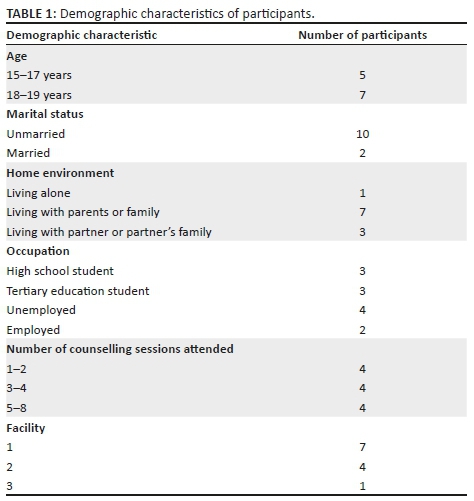 Twelve adolescent mothers were interviewed for this study. The participants' demographic information is summarised in Table 1.
