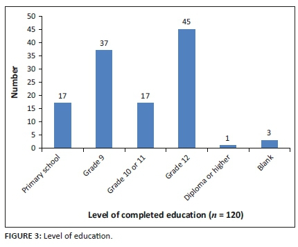Almost 70% of participants had not completed Grade 12, and one participant had a higher education qualification. The data are probably not representative of the population in the area as sampling occurred during weekday afternoons when those who are employed as well as those at higher education institutions would not be available. A small percentage (25%) of participants sampled was employed. However, because the majority of participants were unemployed and receiving social grants, they were more likely to attend public hospitals and clinics when requiring healthcare.