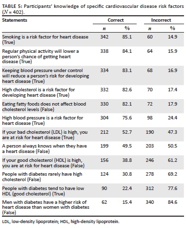 Participants' knowledge of cardiovascular disease and its risk factors