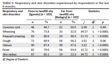 Comparison of respiratory and skin disorders between residents living close to and far from Solous landfill site in Lagos State, Nigeria