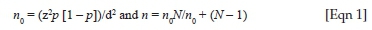n0 = sample size for infinite population; n = sample size for finite population; p = prevalence of hypertension; d = precision set at 0.05.