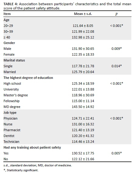 This study showed that older age groups had higher attitude scores; this may be explained by higher working experiences, which lead to an increase in tolerance to changes in working conditions. Furthermore, it is expected that the increasing age of HCWs will make them more appreciative of their jobs and push them to improve their performance.27 Moreover, new workers may be less sensitive to safety issues, according to El Shafei and Zayed's and Abdi et al.'s studies.14,24,28 This study showed that male participants had higher attitude scores than females. This can be explained by difference in specialties and responsibility distribution and duration of work between them.