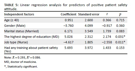 Another predictor revealed by regression analysis was that nurses had a more positive attitude towards PS than physicians. This finding is as a result of the nurses being the first point of contact with clients for most basic benefit packages and services.31 Furthermore, because most nurses were younger and received more information about safety culture, they may be more resilient and could handle stressful working conditions.32 The findings conform to those of the studies by Abu-El-Noo and El Shafei and Zayed, who reported relatively high mean scores among nurses, particularly in the stress recognition domain, working in PHC centres. In contrast, various studies have revealed that physicians outperformed nurses.28,33,34