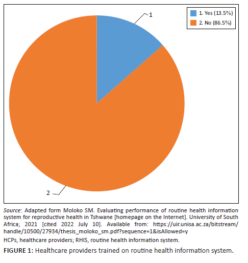 Figure 1 shows that 86.5% of HCPs did not attend a 3-5-day training on RHIS.