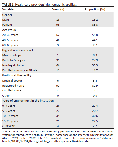 8.Moloko SM. Evaluating performance of routine health information system for reproductive health in Tshwane [homepage on the Internet]. University of South Africa; 2021 [cited 2022 July 10]. Available from: https://uir.unisa.ac.za/bitstream/handle/10500/27934/thesis_moloko_sm.pdf?sequence=1&isAllowed=y [ Links ]