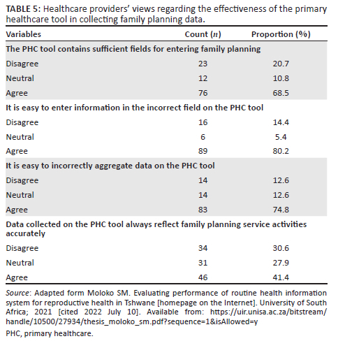 Healthcare providers' views regarding the effectiveness of the primary healthcare data collection tool in collecting family planning data