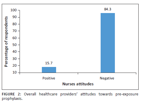 RESULTS: Majority of the study sample consisted of female nurses (92.1%), and most respondents (68%) had moderate PrEP knowledge. Logistic regression showed that age and education were not associated with high level of knowledge. Pre-exposure prophylaxis was viewed negatively by 84.5% of the respondents. The odds of positive attitudes towards PrEP were 1.92 times higher among males than females (95% CI 0.54-6.83) and 1.24 times higher among nurses who had bachelor's degree than diploma holders (95% CI 0.51-3.01).