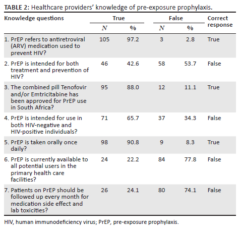 Healthcare providers' knowledge about pre-exposure prophylaxis