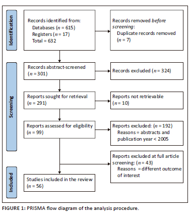 The data were obtained after searching on PubMed and Google Scholar in English using the keywords. A flow diagram documenting the process of study selection is in Figure 1. A total of 625 titles were identified through the literature search, other sources and the removal of duplicates. Evaluation of these citations by the author excluded a total of 324 articles because of not meeting the inclusion criteria, leading to 301 articles for review in full text. Among these articles, a total of 245 were excluded by the reviewer (reasons provided in Figure 1), leaving a total of 56 publications for final inclusion. PRISMA provides an overview of the primary features of these.