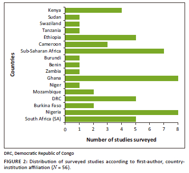 Although the scope of the study was SSA, most papers were about specific countries that meant there were more papers from Nigeria, Ghana and Ethiopia and less from countries such as Zimbabwe, Zambia and Botswana.