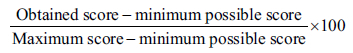 With the assistance of a statistician, the domain scores were calculated using the following mathematical formula: