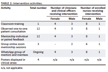 Phase 2b - Acceptability of intervention: Focus group discussion and mentors' observations: Three months after the start of the intervention, an FGD was conducted by an independent research assistant. The FGD involved the primary care providers who had participated in the training and mentorship process. The length of the FGD was 90 min. It was conducted in both local language (Chichewa) and English and was recorded. Audio-recorded data were transcribed verbatim. Thematic analysis was conducted using NVivo version 14 by members of the research team. Themes were developed with reference to mentors' observations through discussion amongst the wider research team.