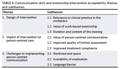 RESULTS: Older persons with serious multi-morbidity and their caregivers identified a need for enhanced communication with their healthcare providers. This helped to inform the development of a communication training skills and mentorship intervention package based on the local best practice six-step Ask-Ask-Tell-Ask-Ask-Plan framework. Primary health care workers reported that the intervention supported person-centred communication and improved the quality of holistic assessments, although space, workload and availability of medication limited the implementation of person-centred communication