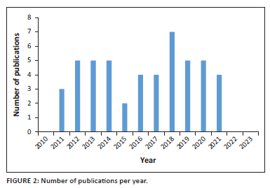 METHOD: A systematic approach (Preferred Reporting Items for Systematic Reviews and Meta-analysis extension for Scoping Reviews) was applied across six databases and grey literature from African universities (2010 to 2021). Data were extracted and analysed quantitatively and qualitatively