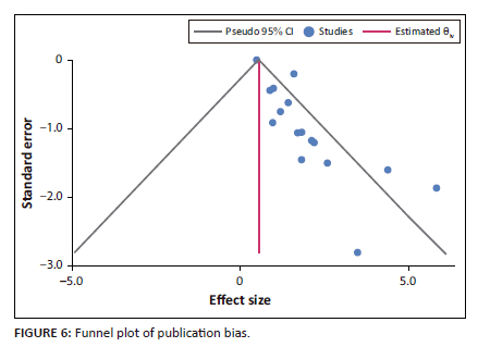 RESULTS: A total of 17 relevant studies, which were either cross-sectional or observational by design, were included in the meta-analysis. Reported effect sizes were within computed confidence intervals (CI) at 95%. The computed Q test of homogeneity was 61.94. The overall mean effect size of 1.43 (95% CI of 0.985-1.883) was statistically significant at a 5% level (Z = 6.26; p < 0.001). The I-squared = 62.17% (p = 0.00) confirmed moderate heterogeneity and the Q-value of 61.94 (p = 0.00) rejected the null hypothesis that the effect size was the same in all the studies. The funnel plot showed that the remaining majority of 13 studies were within the funnel plot on the right-hand side of the line of no effect.