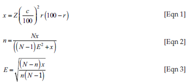 The total study population was derived by summing the number of women over 18 years of age in all three villages, resulting in 1373 women, the assumption being that 80% would have been pregnant or had a child. The sample size for this study was determined to be 150 participants. Sample sizes for each geographic region were determined using RAOSOFT1 online sample size calculator according to equation 1, equation 2 and equation 3 below: