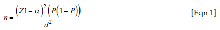 High school learners in the Free State aged 13-19 years, corresponding to grades 8 to 12, with no corrective lenses, were eligible to participate. Moreover, a grade two to four anterior chamber angle26 graded using the Van Herrick technique was necessary for participation. Participants had to have no diseases or medications that were contraindicated for the stimulation of the parasympathetic system. Signed consent and assent forms were also a prerequisite for participation. The formula to calculate a single population proportion was employed to determine the sample size of the learners, as cited in other prevalence studies. It is indicated below:16,27,28
