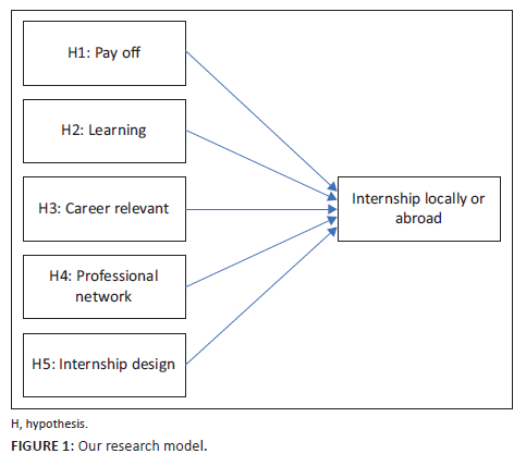 Hora et al. (2020) find that the most important issue regarding students' motivation for partaking in an internship is to be competitive in the job market. As educators, we strive towards such benefits for our students. The major role of an internship is to offer a planned transition from the classroom to the job, and it is a natural bridge between universities and the labour market (Coco 2000). Gault, Redington and Schlager (2000) report significant early career advantages for undergraduates with internship experience. Research also shows that students view internships less as a vehicle for learning, and more as a tool for getting a job (Cannon & Arnold 1998). We then suggest hypothesis 3: