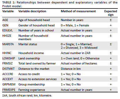 where Yi = 'willingness to engage' (WTP) in agricultural enterprises; Yi* = estimated value of Yi (Yi* = 1) if Yi > 0 and εi is the error term that follows a normal distribution (mean μ = 0, variance σ =1). P is the probability function and β is the vector of factors to be estimated. Xi is the matrix of explanatory variables that impact the ith young people's determination to be willing to engage in farming enterprises. The dependent variable Yi or WTP takes a value of 1 for cultivators who are willing to engage in agricultural enterprises and zero otherwise.