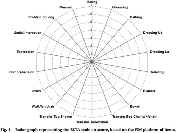 CONCLUSION: The four BETA subscales achieved "very well" to "excellent" levels of fit to the Rasch model. This finding thus creates an opportunity to convert the BETA's Likert qualities into an interval measure to calculate change in patients' activities of daily living metrically as a direct result of effective restorative nursing.