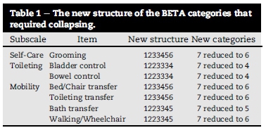 METHOD: A quantitative analytical design was followed using Rasch analyses whereby BETA raw data was collected from patients (n = 4235) receiving nursing care in 28 South African sub-acute and non-acute nursing facilities. The data was prepared for Rasch analyses and imported into WINSTEP® Software version 3.70.1.1 (2010). Final results were shown by means of figures and graphs.