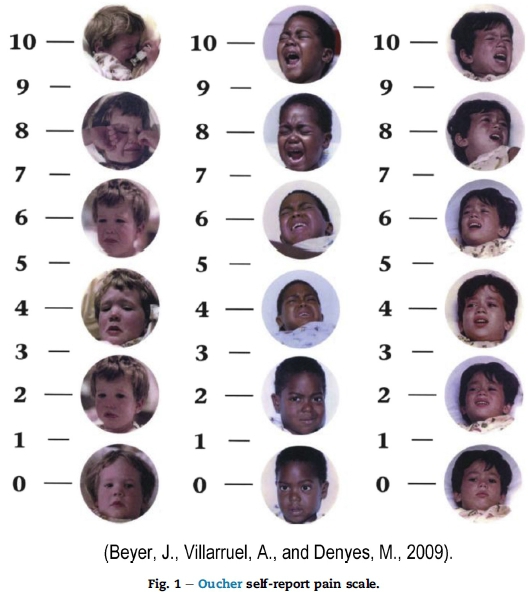 Beyer, J. E., Denyes, M. J., & Villarruel, A. M. (1992). The creation, validation, and continuing development of the Oucher: a measure of pain intensity in children. Journal of Pediatric Nursing, 7, 335-346. [ Links ]