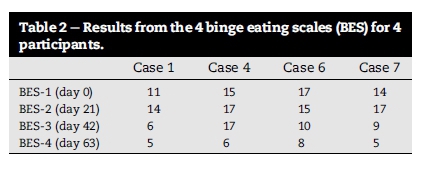 RESULTS: All participants reported a decrease in the severity and frequency of binging behaviour; concurrent improvements in general health were also noted.