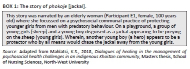 BACKGROUND: The researchers established that an indigenous KhoiSan community functions healthily without western mental health services. This community relies on indigenous healthcare with positive health outcomes over centuries. Despite this positive evidence, the community's therapeutic achievements have not been explored previously