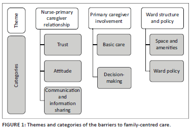 RESULTS: Three themes indicating the barriers to family-centred care emerged from the data, namely nurse-primary caregiver relationship, primary caregiver involvement, and ward structure and policy