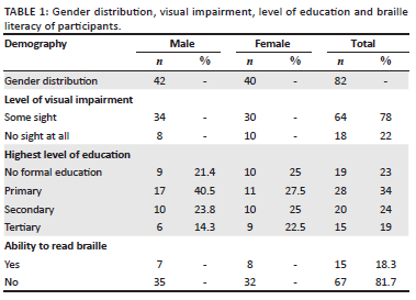 Only 18.3% of the participants could read braille, whilst 81.7% could not, as shown in Table 1. The cost of learning how to read braille in a township is not feasible, and special schools for the blind are not yet available in Mankweng township. There are approximately six schools for the blind in the Limpopo province, and the nearest school for the blind is approximately 60 km away from Mankweng (SANBC 2015). These circumstances make it extremely difficult for blind people, who live in and around Mankweng township, to access facilities and institutions that teach braille.