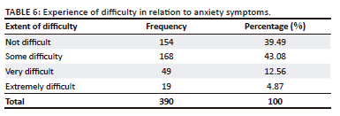 Table 6 shows the participants' responses regarding the extent to which anxiety symptoms make it difficult for them to perform daily activities.